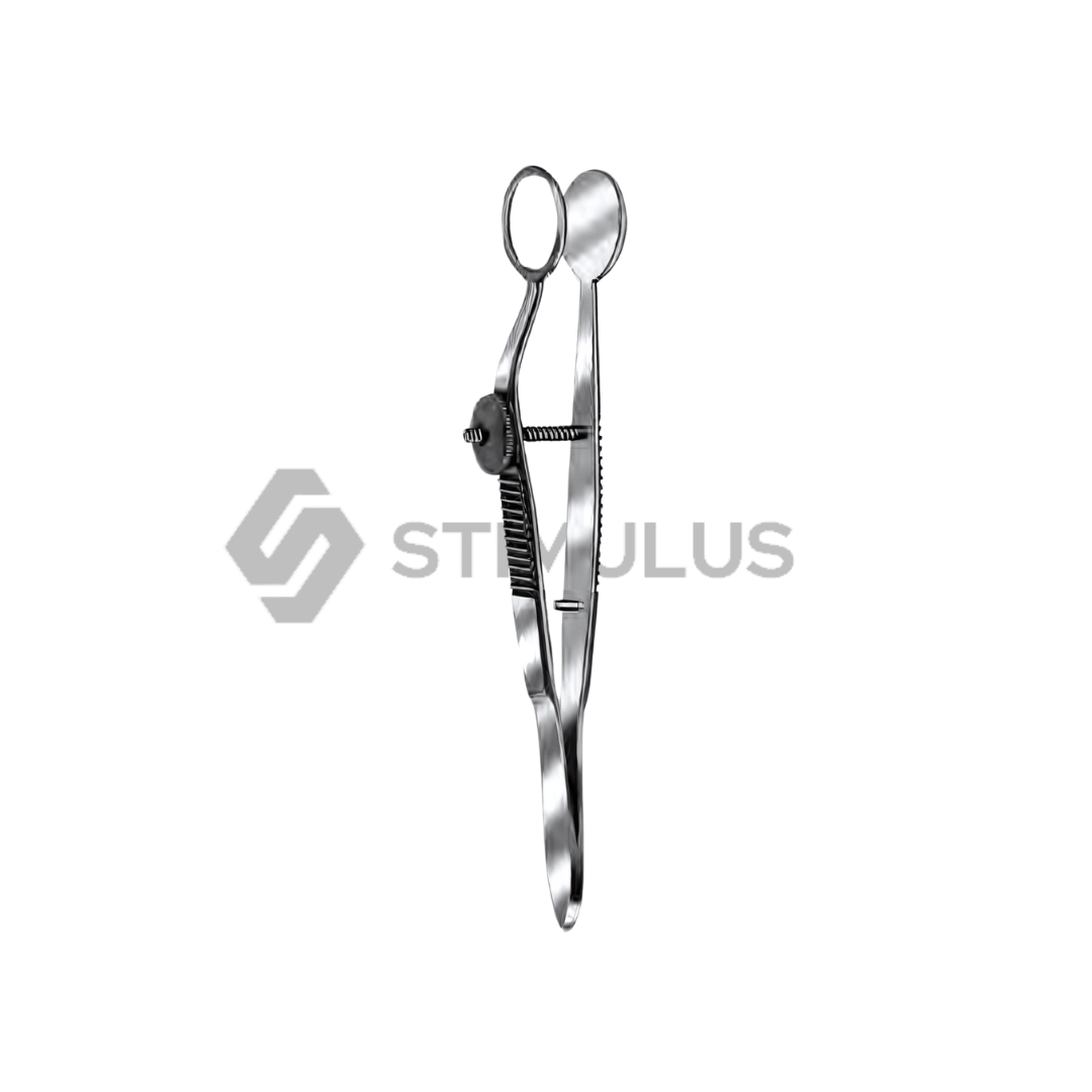STIMULUS Instruments Presents the Francis Chalazion Forceps: Our precision-crafted oval solid 17mm broad lower plate offers the best possible grip and control. The upper plate is open and has interior measurements of 12 x 14 mm, which allows for easy handling. Our forceps ensure stability during procedures with their locking thumb screw and serrated handle. For top-notch instruments built for exceptional performance, rely on STIMULUS.